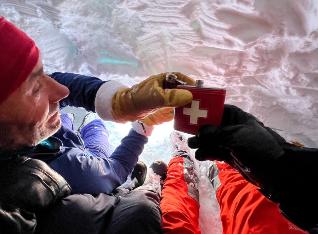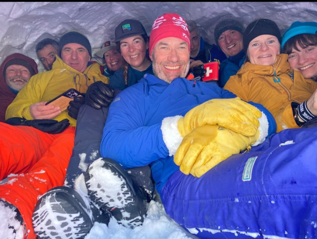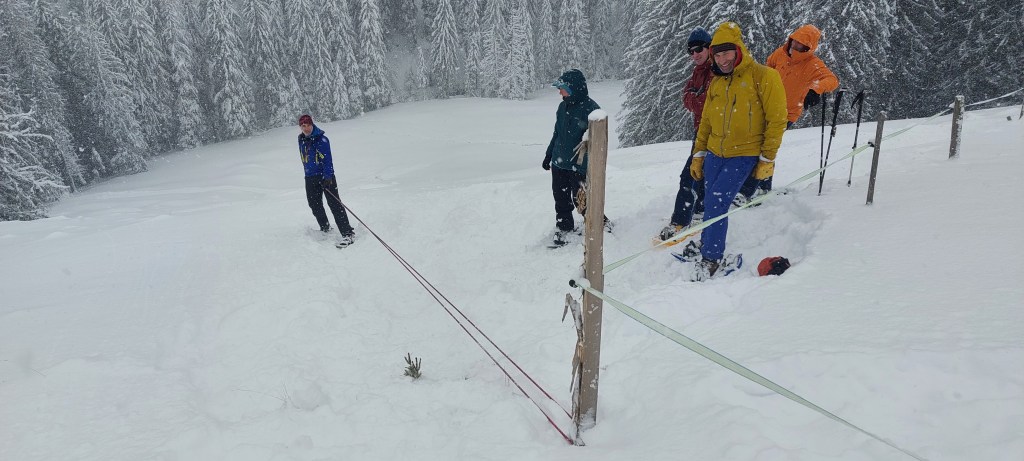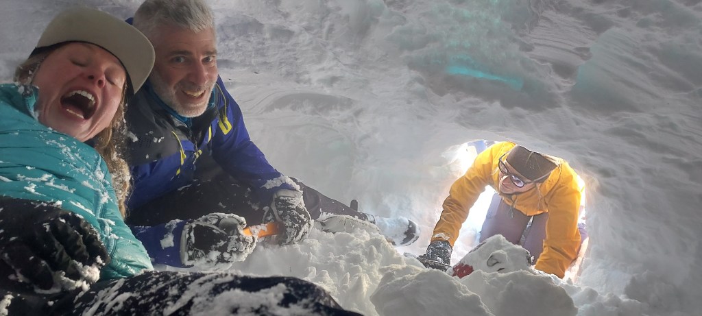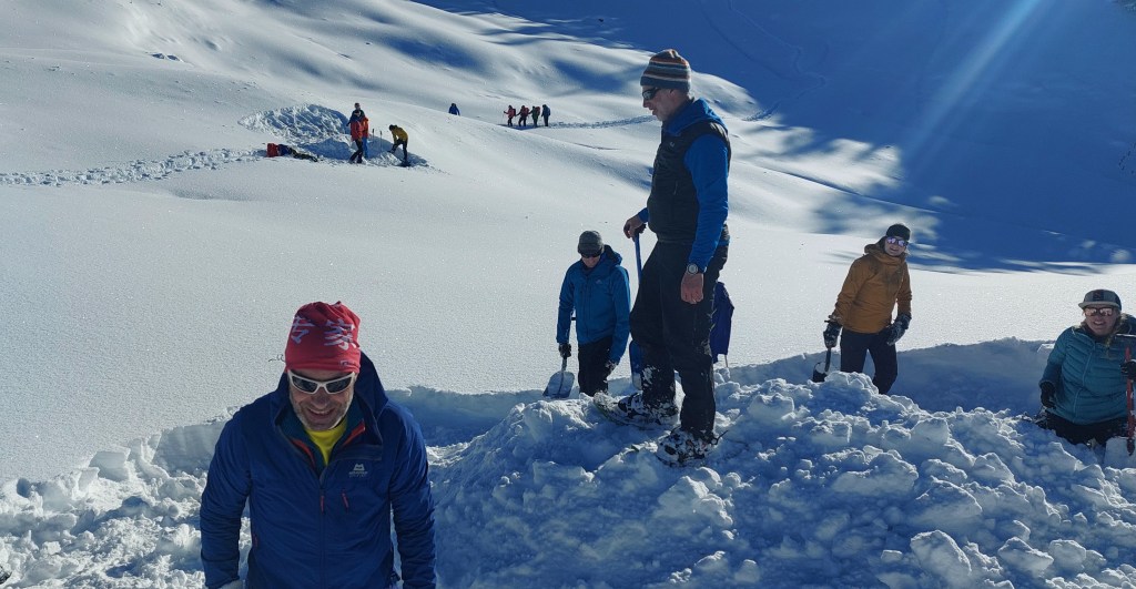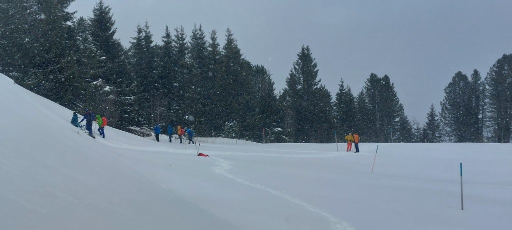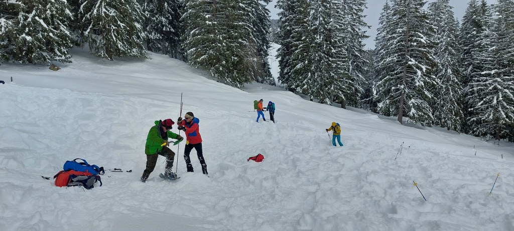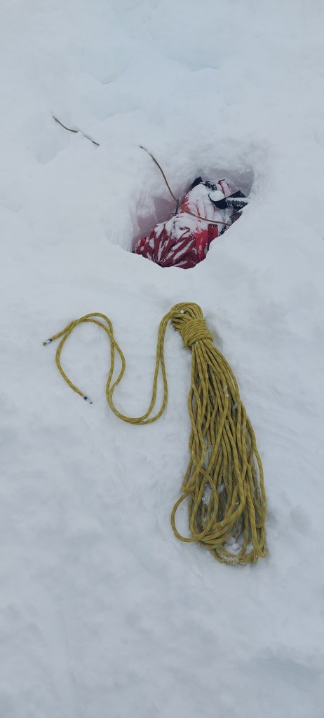 - Mass burial scenario (not assessed) – Sandy’s Team staged a 7 victim avalanche scenario – surface clues, a foreign awol ‘helpful’ informant, semi buried victim and 6 transceivers buried in sacks (2 on top of each other)