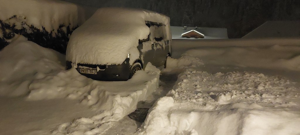 It was minus 18°C this morning, my 5 litres of water in the van was a solid block, had to go into the chalet and pour 2 kettles of water into it before i could cook breakfast in the van.