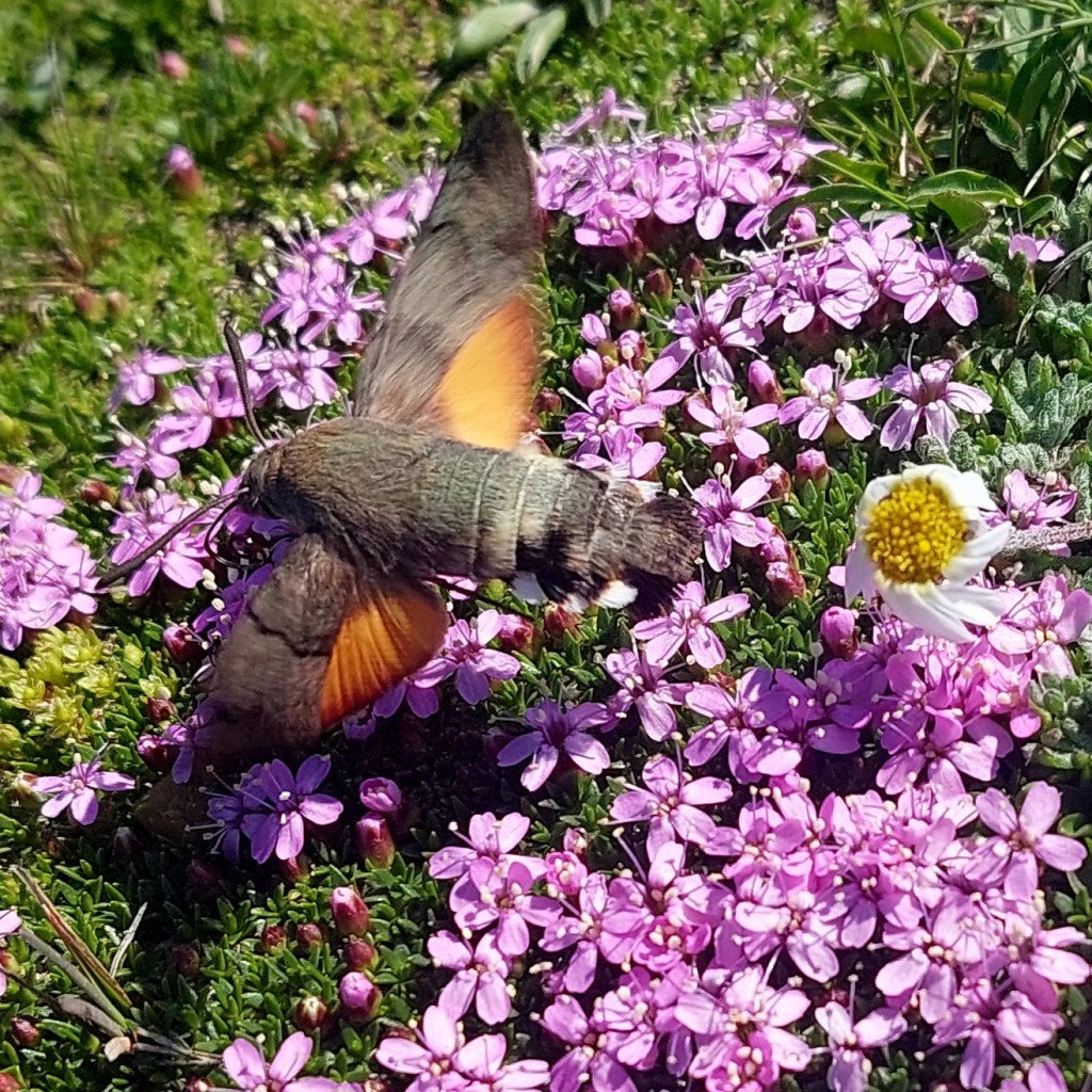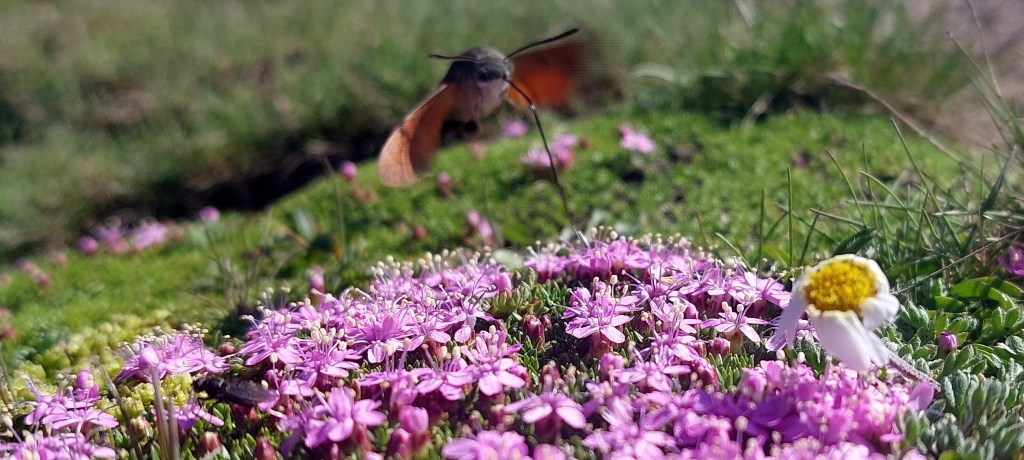 View of Breithorn, Punta Polluce and Punta Castore from campsiteHumming-bird moth collecting nectar