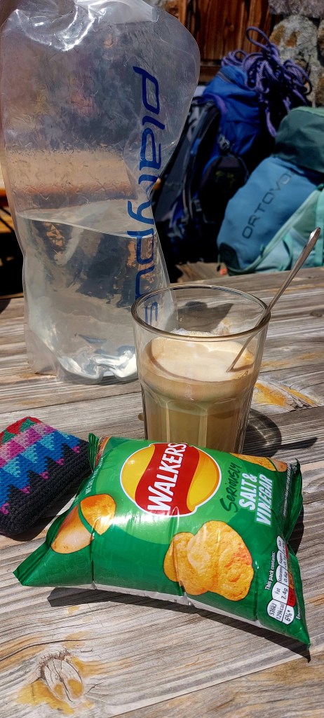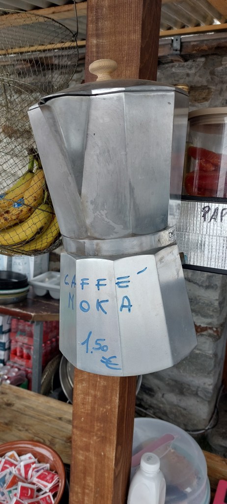28th – walked up part of the Tour de Monte Rosa (TMR) to Rifugio Zar Senni 1664m for polenta & coffee.