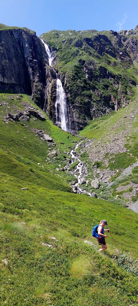 7th Aug – enough of the tarmac pitch and bit sort of crowded feel of Camping Cervinia (even though it wasgood of them to squeeze us in) so bailed over the St Bernard to Le Buet – leaving our eyes as payment for a shit coffee and some kack tart at the top of the pass (not my idea). Enjoyed the massive Becky and Stace graff though (didn’t get a pic unfort)