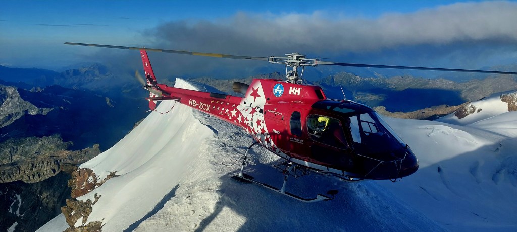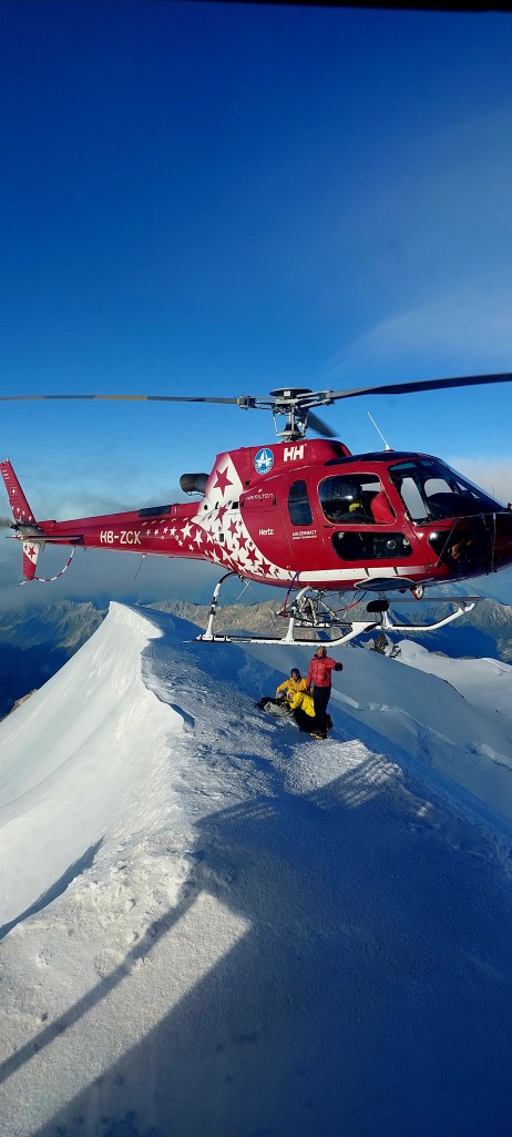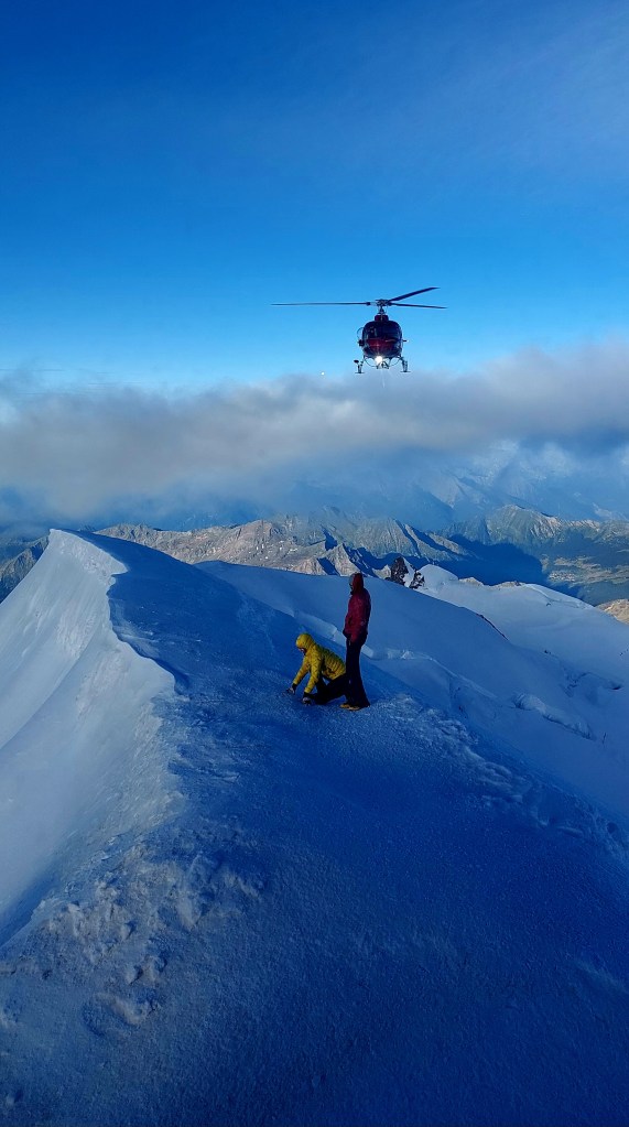 This German lass, in our room, got AMS too and took a ride downThey put down on that small flattening on the snow ridge..right outside the Cabane so these pics are not zoomed