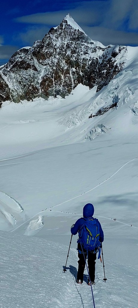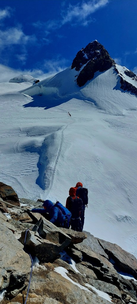 Anyway now I had recovered, we set off down (deciding too windy and we weren’t acclimatised enough for the Dufourspitze (and i had no food left in me).