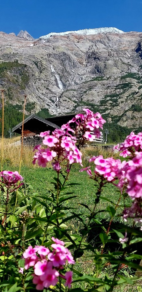2nd Aug – moved round to Aosta Valley yesterday just short of Champoluc. Today free bus to Champoluc then walked up to St Jacques for expensive lunch outside hotel served by 2 crabby old women then drank wine in another hotel garden, ate aperitifs and watched some old dudes playing average jazz.