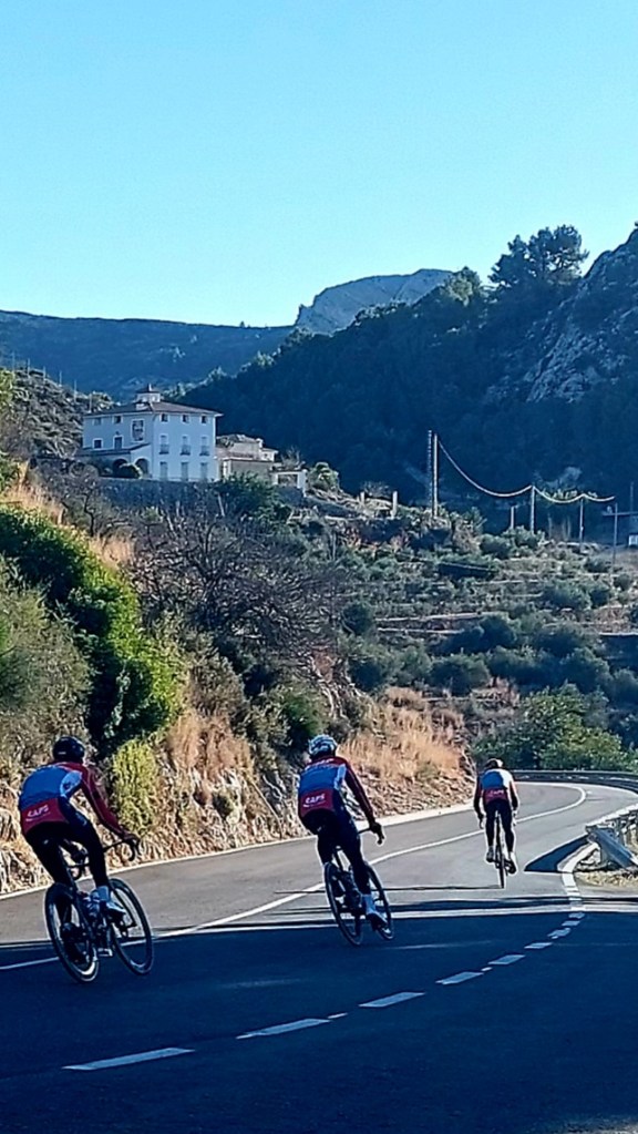We live in the blue one (2nd one in)View from roof terrace of the Bernia RidgeThe neighboursLocals killing it on the amazing tarmacCastell de Castells (the castle of castles impressive but a tad arrogant)Contemplating whether our selection of cold meats will see us to the end of the seigeExiting the Penya de Castellets ridge