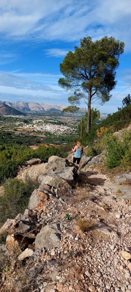 View over ParcentReturn down Mozarabuc trail used to export raisins to the uk from Tarbena before the road was builtVillage hall in Parcent serving foodCalamar planche was quite challenging (this is half-way through)