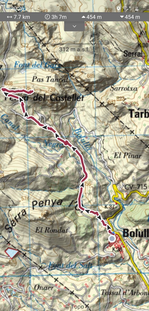 22nd Dec – walked from the house over to the Fonts d’Algar then up the Rio d’Algar to Penya Pollastra.