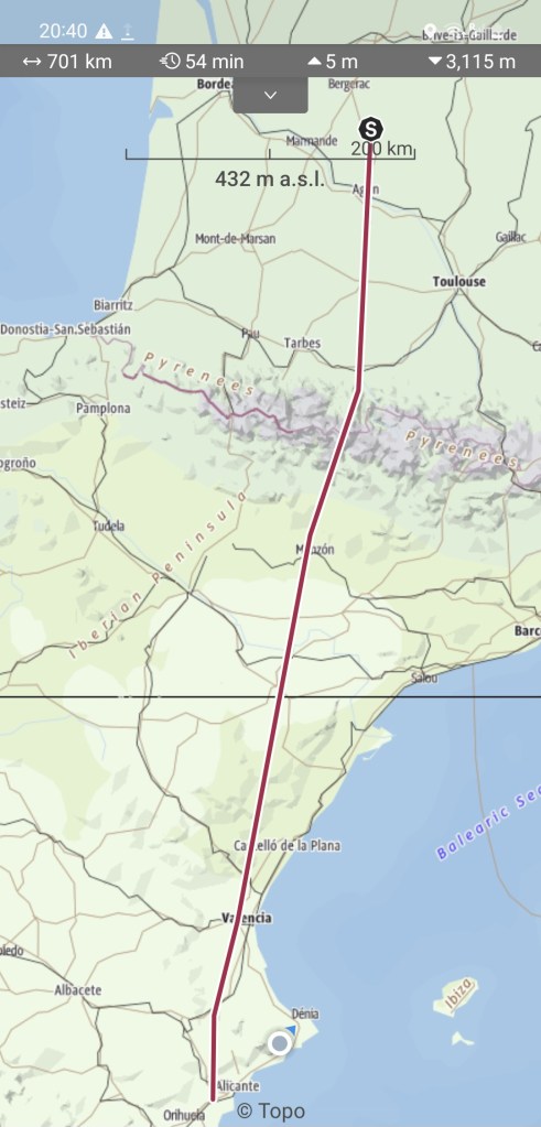 The ridge is in the background – incidentally this Peugot 208 has been a really nice drive, so glad we swapped it out for the battered (every panel) long low Kia Ceed, was a bit of a hassle at the hire car desk when all you want to do is drive away and start your holiday (Kia horrible Ceed estate thingy was apparently same class as the VW T Roc)Climbing above Serpis the first company to market anchovy stuffed Olives in SpainWalk-off ridge finishOne of the best meals we’ve had in Spain Herbero = herbalist which was like the Italian Genepi…erm