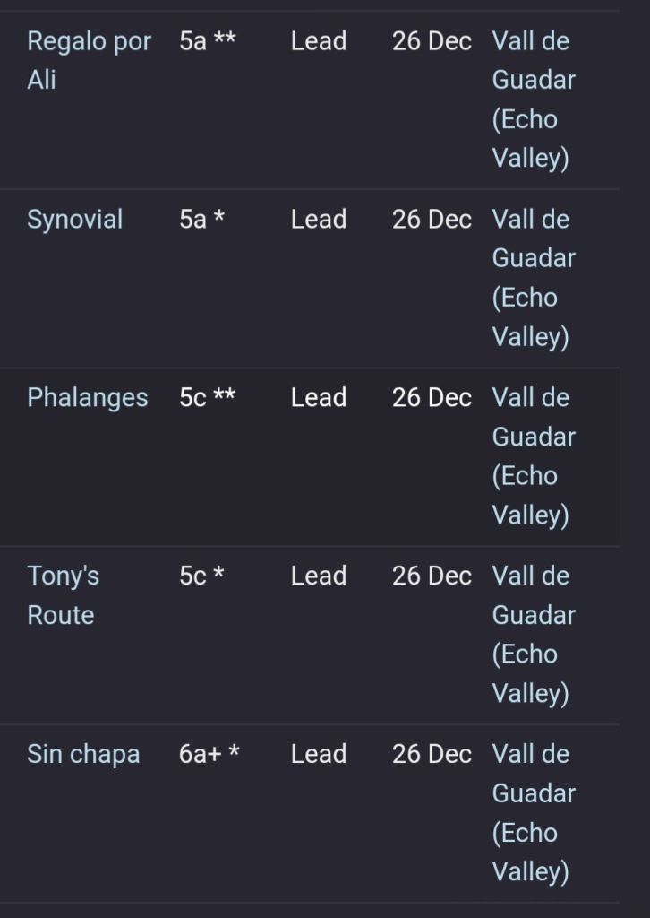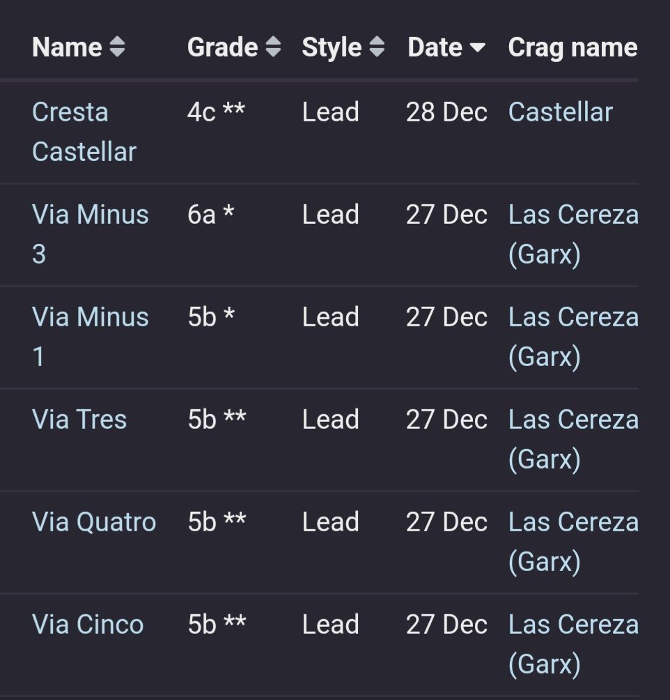 27th Dec – climbing Garx, bit annoying – miserable sniffing woman, rockfall + belayers without helmets, hungry perros & too busy.
