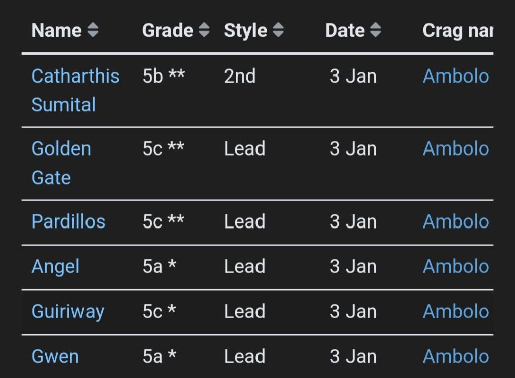 03 Jan – climbing Ambolo with Kevin & Tracey- smashed a few off then kicked back on the rocks. Jenny & I hit Melatoni on way home.