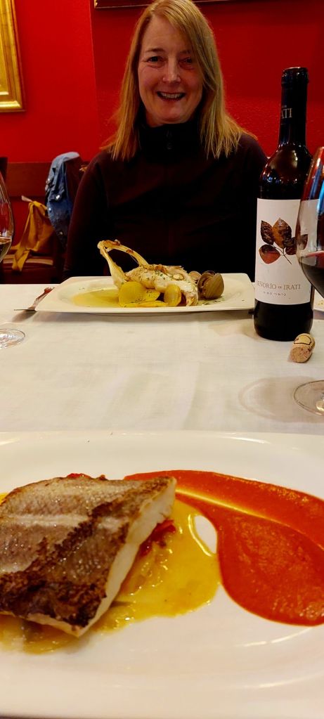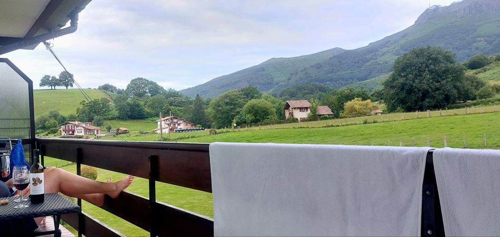 Arrived Elizondo pretty spent after long hike and descent in sandals (i had no words or useful contribution), Jenny checked us into Hostel Elizondo (basic but free really good breakfas). Went nuts in the supermarket then to street bar of Louis’ choice where literally the rudest twat on the planet served me the biggest wettest chese omelette and ignored that Jenny might like to dine; before securing un table pour deux in the best Basque restaurant in Elizondo, where we watched big mamma quietly produce superb cuisine.