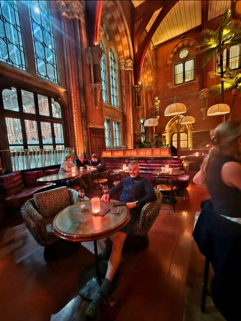 Sat 13 Jul: Jules took us to Northallerton in the Ravmobile – train to King’s Cross to stay in cheapo hotel after spending the evening in the sumptuous St Pancras Station Hotel bar.
